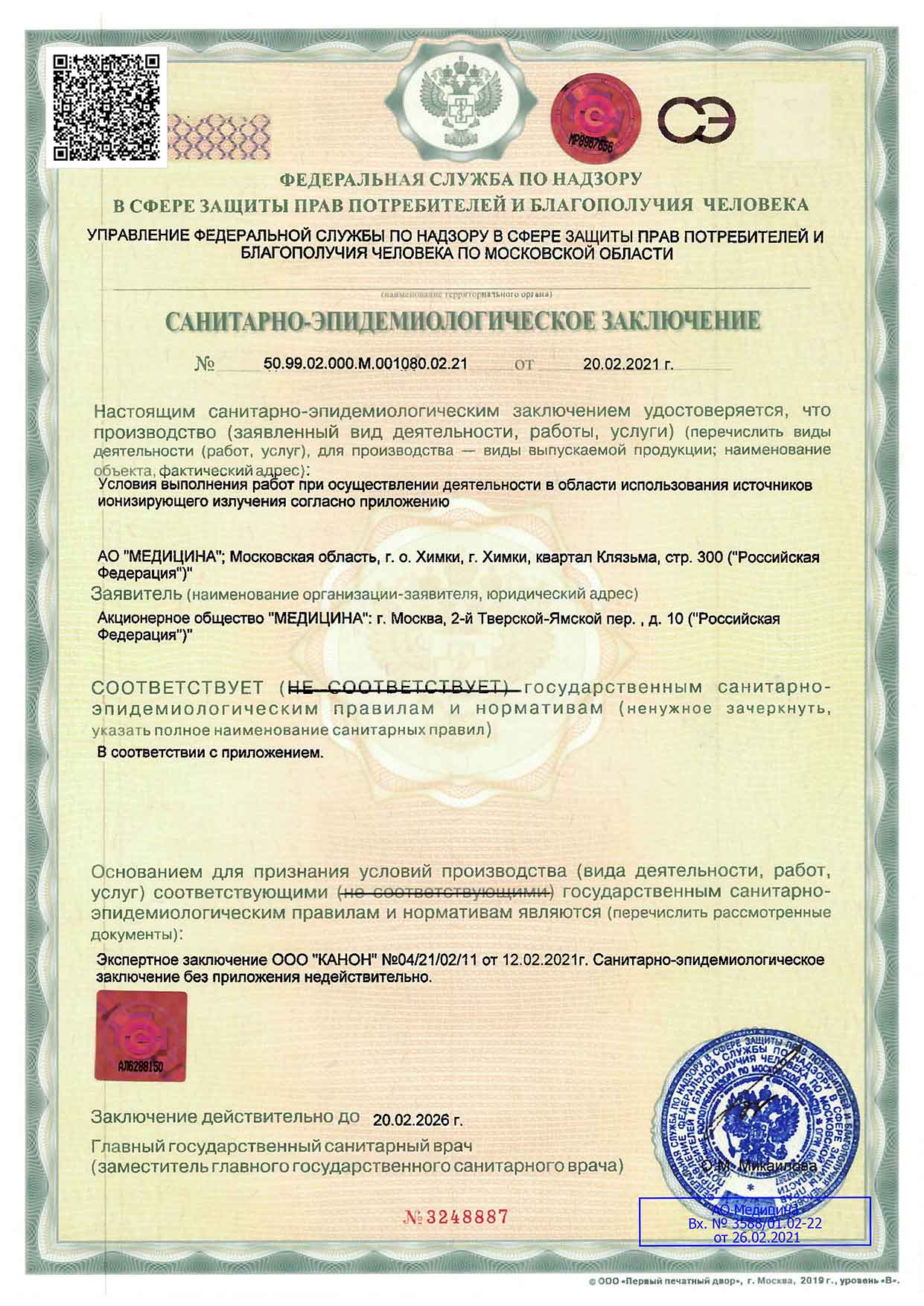 Сертификат Росздравнадзора № 0239/02КБДМ