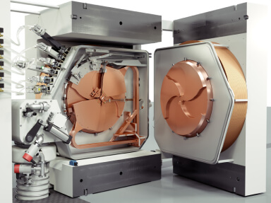 Конструкция циклотрона предполагает получение как нейтронов, так и протонов, обеспечивая вам возможность выбора. Также вы можете настроить систему для работы с различыми мишенями и системами синтеза для производства радиофармпрепаратов, наиболее часто используемых в ПЭТ. С ростом потребностей вы вы можете увеличить производительность или расширить спектр производимых радиоизотопов.
